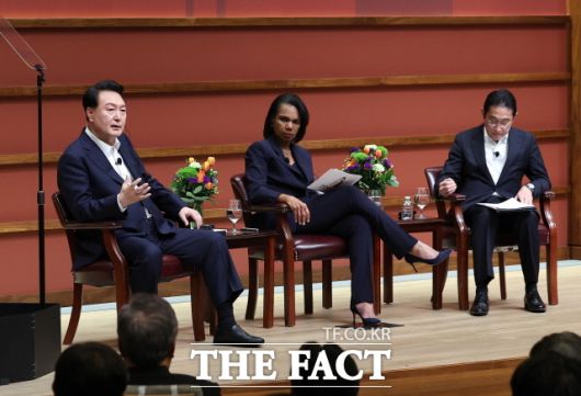 [더팩트ㅣ박숙현 기자] 미국을 방문 중인 윤석열 대통령은 17일(현지시간) 기시다 후미오 일본 총리와 미국 대학을 방문해 반도체, 양자 기술 등 첨단기술 분야와 청정에너지 분야에서의 한일, 한미일 협력의 필요성을 강조하고 특히 '수소' 분야에서의 공조 방안을 구체화 해나가기로 했다.