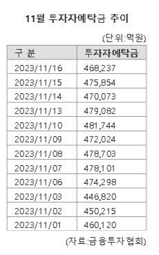 19일 금융투자협회에 따르면 투자자예탁금은 46조8236억원(16일 기준)까지 올라왔다. 공매도 금지가 발표되기 직전인 3일 투자자예탁금이 44조6820억원이었던 것을 감안하면 2주 만에 2조원 이상 늘어난 셈이다.