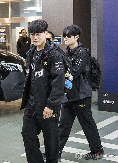 (서울=연합뉴스) 김주환 기자 = 19일 서울 구로구 고척 스카이돔에서 열리는 2023 리그 오브 레전드(LoL) 월드 챔피언십(롤드컵) 결승전을 앞두고 T1의 '구마유시' 이민형과 '제우스' 최우제가 차에서 내려 대기실로 들어가고 있다. 2023.11.19