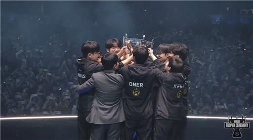 (서울=연합뉴스) 김주환 기자 = 리그 오브 레전드(LoL) 국내리그 LCK의 T1이 국제대회 월드 챔피언십(롤드컵)에서 7년 만에 우승컵을 거머쥐었다.