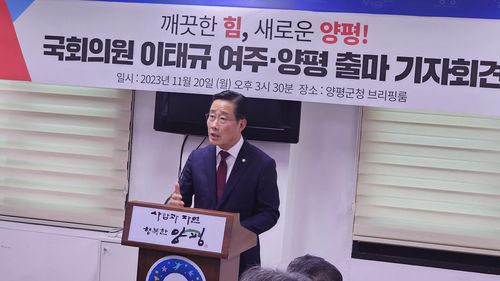 (여주=연합뉴스) 이우성 기자 = 국민의힘 정책위원회 수석부의장인 이태규(59·비례) 의원은 20일 "내년 4월 22대 국회의원 선거에서 여주·양평 선거구에 출마하겠다"라고 선언했다.