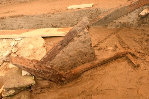 2023년 6월 몽촌토성에서 추가 출토된 삼국시대 목제 쟁기 |