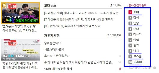 현재 해당 음란물들은 '고파스'에서 삭제됐고, 사이트도 정상 운영 중이다. 하지만 실시간 검색순위 창에 '후배' '인증' '남자' '로스쿨' '과후배' 등의 관련 검색어가 여전히 남아있는 것을 확인할 수 있었다.