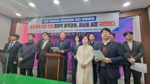 더불어민주당 창원시의원단은 21일 창원시청 프레스센터에서 기자회견을 열고 "사화·대상공원 민간개발특례사업 중간감사 결과 발표는 내년 4월 국회의원 선거를 불과 5개월 앞둔 민감한 시기에 전임 시장에게 정치적 타격을 주기 위한 목적으로 이뤄진 정략적 표적 감사"라고 재차 주장했다.
