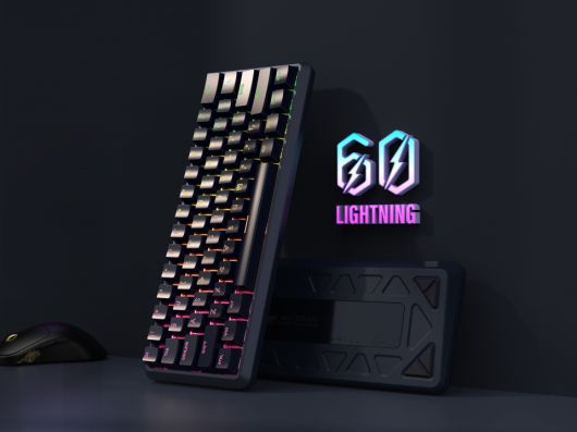 라이트닝 60은 샌드위치 방식으로 타건 시 통 울림 없는 안정감을 보여주며, 기존 우팅키보드를 개선한 61키 배열과 더욱 견고한 알루미늄 상판을 사용해 전체적인 무게감과 깔끔한 디자인으로 완성도를 높혔다.