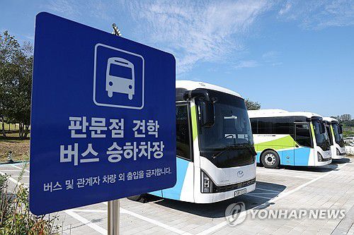 파주시 임진각 판문점 견학지원센터에 대기하고 있는 견학버스 |