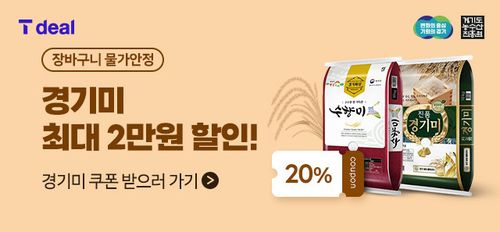 경기도 농수산진흥원이 주관하는 이번 사업은 티딜이 지역 농산물을 판매하는 첫 사례다. 티딜 경기미 할인 이벤트 페이지에서 이달 30일까지 20% 특별할인 쿠폰을 내려받아 결제 단계에 적용하면 된다.