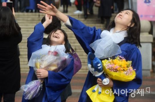 23일 서울 용산구 숙명여자대학교에서 열린 학위수여식에서 졸업생들이 학사모를 던지고 있다. /문호남 기자 munonam@ |