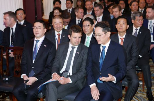 이날 한국 기업계에서는 류진 한국경제인연합회장과 이재용 삼성전자 회장, 정의선 현대차 회장, 구광모 LG회장, 신동빈 롯데 회장, 김동관 한화 부회장, 구자열 한국무역협회 회장, 구자은 LS 회장, 조현준 효성 회장, 김기문 중소기업중앙회장 등이 참석했다.