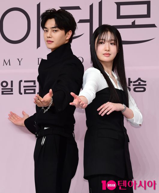 [텐아시아=조준원 기자]배우 송강과 조혜주가 24일 오후 서울 양천구 목동 SBS에서 진행된 SBS 새 금토드라마 ‘마이 데몬’ 제작발표회에 참석해 포즈를 취하고 있다.