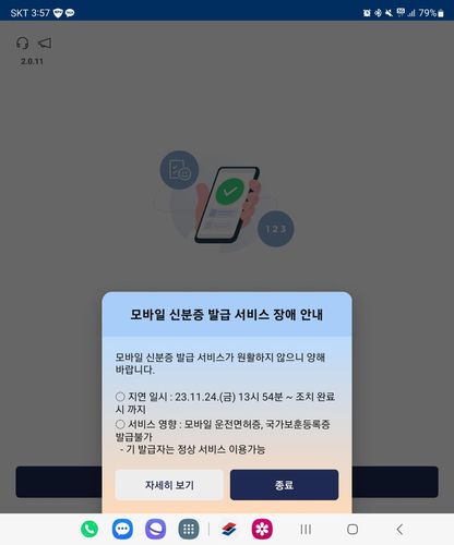 이후 5시를 넘어서도 모바일 신분증 발급 절차 등을 안내하는 웹사이트만 접속이 될 뿐, 실제 모바일 신분증을 발급하는 앱 서비스는 전면 중단된 상태다.