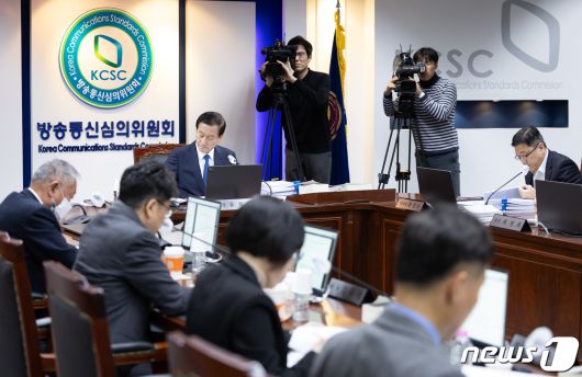 류희림 방송통신심의위원회 위원장이 이달 13일 오후 서울 양천구 방심위 회의실에서 열린 제2023년 제23차 방송통신심의위원회 회의를 주재하고 있다. 2023.11.13/뉴스1 ⓒ News1 이재명 기자 |
