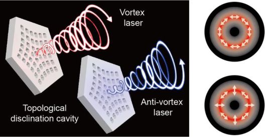 연구팀은 자체 제작한 인공 결정체에서 원자의 위치에 원자 대신 공기구멍을 넣는 방법으로 새로운 레이저 구조인 '디스클리네이션 광공진기'를 개발했다. 이를 통해 레이저에서 나오는 빛이 시계(또는 반시계) 방향으로 돌아가는 소용돌이 나노레이저를 구현하는 데 성공했다.