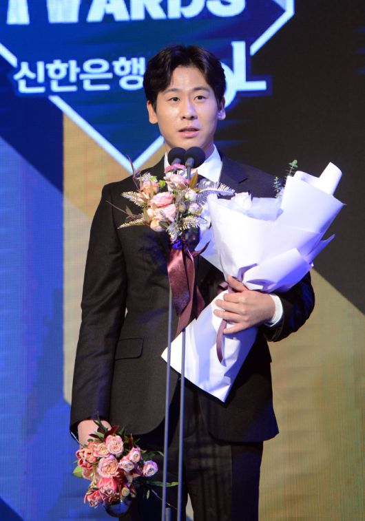 KIA 박찬호가 ‘2023 KBO 시상식’에서 유격수부문 우수수비상을 수상한 뒤 소감을 발표하고 있다. 사진=김두홍 기자 kimdh@sportsworldi.com |