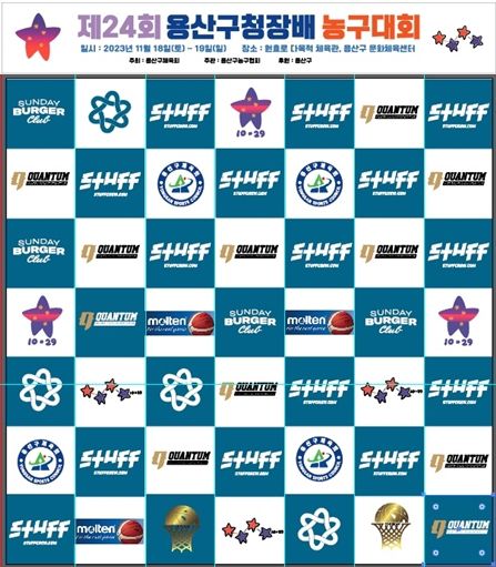 용산구 농구협회에서 제작한 '제24회 용산구청장배 농구대회' 현수막. 용산구 측이 '구청장배 체육대회 취지에 맞지 않는다'는 이유로 변경을 요청, 농구대회 당일에는 추모의 별이 없는 현수막이 올라갔다. [사진= 농구협회 제공] |