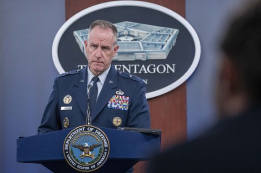 브리핑하는 팻 라이더 美국방부 대변인. 워싱턴 AP=연합뉴스. |