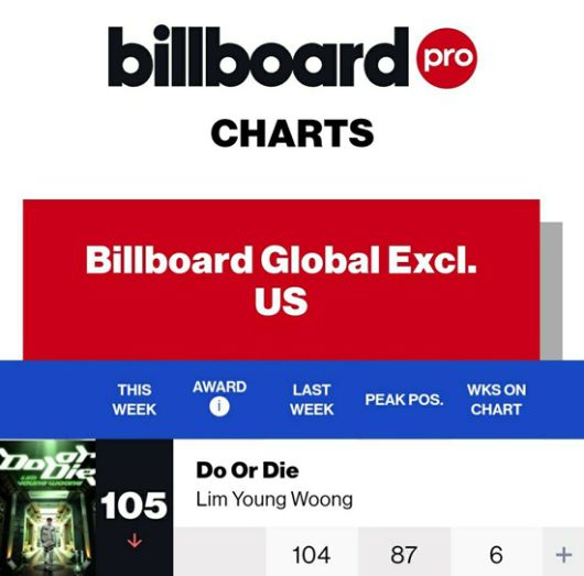 임영웅의 'Do or Die'는 지난 28일 미국 빌보드가 발표한(2023년 11월 28일 자) 글로벌(미국 제외) 차트 105위에 올랐다. 지난주 대비 1계단 하락했지만 6회 연속 차트인 위업을 달성했다.