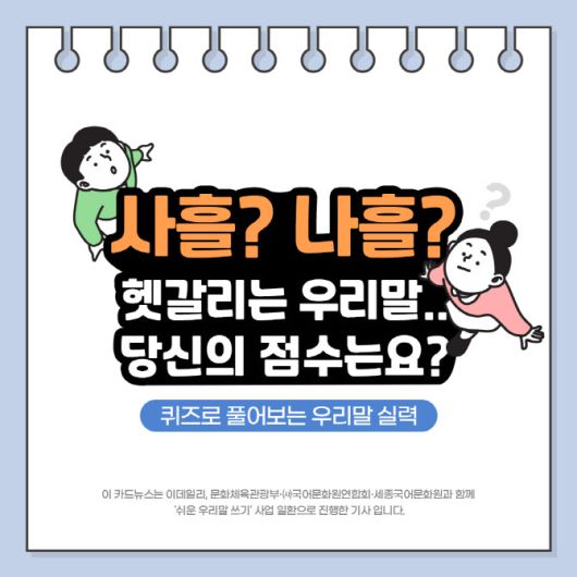 이 카드뉴스는 이데일리, 문화체육관광부·㈔국어문화원연합회·세종국어문화원과 함께 ‘쉬운 우리말 쓰기’ 사업 일환으로 진행한 기사 입니다.