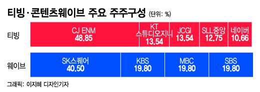 29일 콘텐츠 업계에 따르면, OTT 서비스 티빙과 웨이브의 대주주인 CJ ENM과 SK스퀘어는 합병을 포함한 다양한 협력 방안을 논의 중이다. CJ ENM은 티빙 지분 48.85%, SK스퀘어는 콘텐츠웨이브 지분 40.5%를 각각 보유한 최대 주주다.