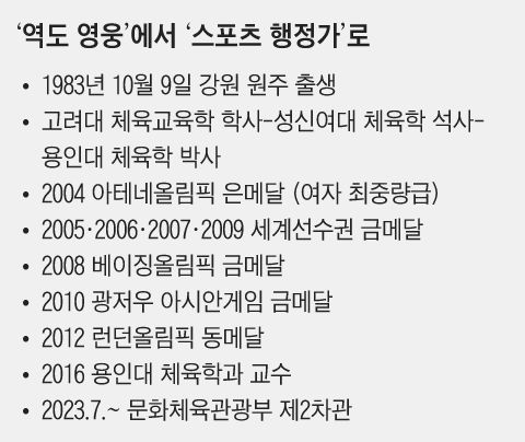 지난 27일 강원 평창군 대관령면 올림픽 슬라이딩 센터. 장미란 차관은 시설 점검차 방문한 자리에서 동계 청소년 올림픽 루지 1인승 종목에 출전하는 박서현(15·거제중)양을 만났다. 그에게 “루지 얼마나 좋아해요?”라고 묻자 박양은 “베이징 올림픽을 보고 매력에 푹 빠졌는데 대표까지 뽑혀 거제에서 올라와 훈련하고 있다”고 답하며 즐거워했다. 장 차관의 얼굴에도 미소가 번졌다.