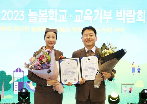 (서울=연합뉴스) 임성호 기자 = 아시아나항공[020560]은 사내 재능기부 단체인 '아시아나 교육기부 봉사단'의 이용주 선임기장과 현보영 부사무장이 '2023 제12회 대한민국 교육기부 대상'에서 개인 부문 대상을 받았다고 30일 밝혔다.