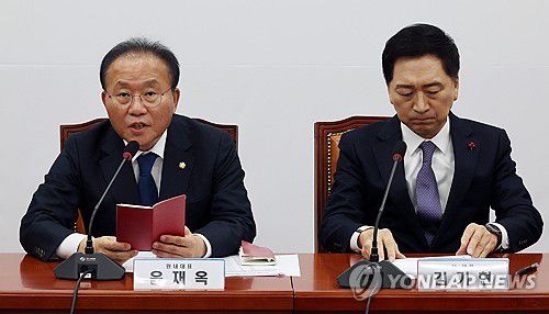 (서울=연합뉴스) 홍정규 안채원 기자 = 국민의힘 윤재옥 원내대표는 30일 더불어민주당이 개의를 추진하는 국회 본회의에 대해 "민주당이 국회의장과 짬짜미한 탄핵용 본회의"라고 비판했다.