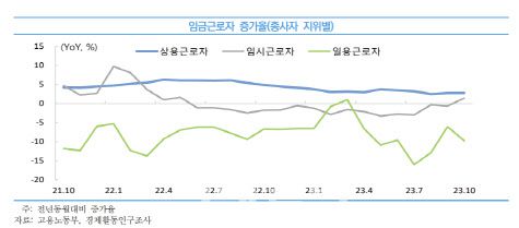 상용근로자는 36만2000명 불어나 증가세를 유지했다. 임시근로자도 8만1000명 증가세로 전환했다. 반면 일용근로자는 10만6000명 줄어 계속 감소하고 있다.