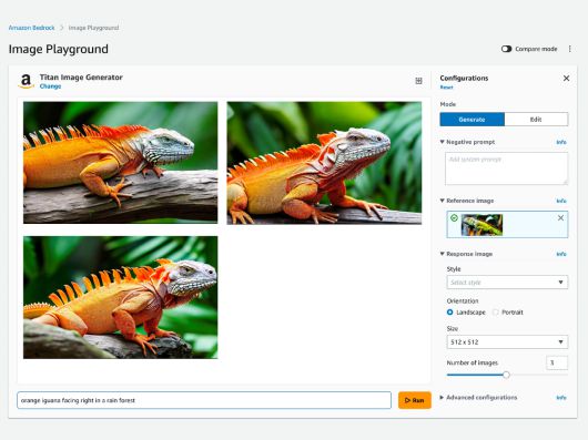 이에 따르면 AWS는 타이탄 이미지 생성기를 '아마존 베드록'에 프리뷰로 출시했다. 타이탄 이미지 생성기는 오픈AI '달리(DALL-E)'와 같은 독립적인 앱이나 웹서비스가 아니라, 베드록에서 API를 활용해 기업이 자체 이미지 생성 AI 서비스를 만들 수 있도록 지원하는 개발자 도구다. 광범위한 분야에 걸쳐 다양한 데이터셋을 학습했고, 자체 데이터로 미세조정도 할 수 있다.