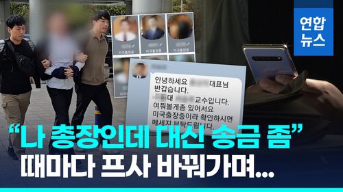 (서울=연합뉴스) 전 대학 총장, 공직자 등을 사칭해 대리 송금을 요구하는 수법으로 억대 돈을 가로챈 40대 남성이 경찰에 붙잡혔습니다.