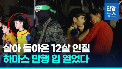 (서울=연합뉴스) 팔레스타인 무장정파 하마스가 12세 이스라엘 소년 인질을 구타하고 이스라엘 침공 현장을 찍은 영상을 보도록 강요했다는 인질 가족의 증언이 나왔습니다.