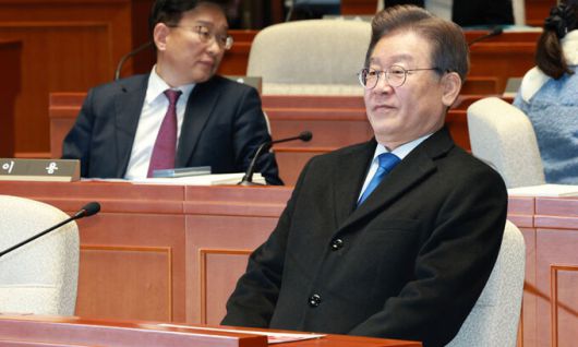 이재명 더불어민주당 대표가 30일 서울 여의도 국회 본관 예결위회의장에서 열린 의원총회에 참석해 의자에 앉아 있다. 뉴시스 |