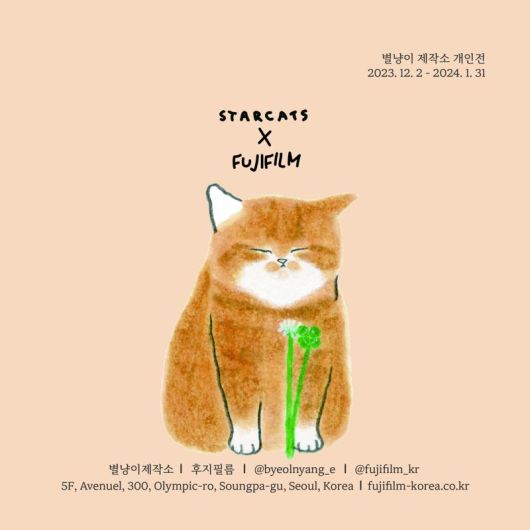 후지필름 코리아 임훈 사장은 “말랑말랑하고 귀여운 그림체로 사랑받고 있는 별냥이제작소 작가의 첫 개인전을 에비뉴엘점에서 전시하게 되어 기쁘다”며 “그림마다 다른 고양이들의 다양한 표정, 눈빛을 감상하며 작가의 어떤 이야기가 담겨 있을지 상상의 나래를 펼치길 바란다”고 말했다.