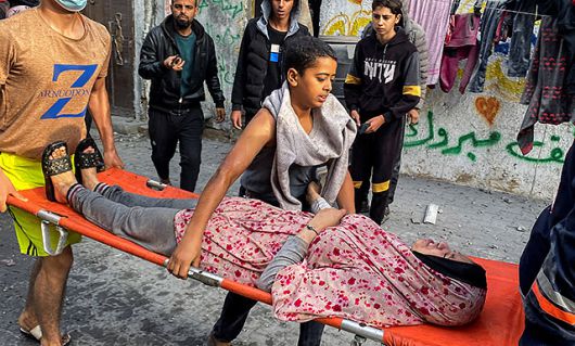 ▲ 이스라엘과 하마스 간 휴전이 끝난 1일(현지시각) 이스라엘의 공격으로 부상을 당한 팔레스타인 여성이 들것에 실려 이송되고 있다. ⓒ로이터=연합뉴스