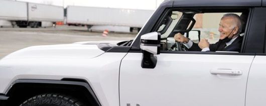LG 배터리 탑재된 GM 전기 픽업트럭… 바이든도 “굿” - 조 바이든 미국 대통령이 지난해 11월 GM 디트로이트 공장을 찾아 전기 픽업트럭인‘허머EV’를 시승하고 있는 모습. 이 차에는 LG에너지솔루션이 GM과 만든 대용량 배터리가 탑재돼있다. 바이든 대통령은 지난해 말 GM과 포드 공장을 모두 방문했고, 전기차 산업 육성의 중요성을 역설하면서“전기차 시장에서 중국이 1등 하도록 놔두지 않을 것”이라고 말했다. /AP연합뉴스 |
