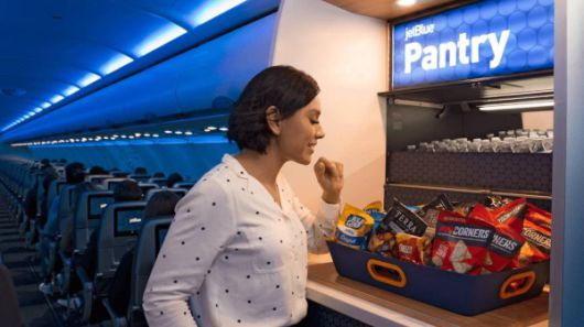 기내 스낵바 도입은 이번이 첫 사례는 아니다. 미국의 저비용 항공사인 제트블루는 지난 2014년 기내 스낵바 도입을 시작했다. 제트블루의 스낵바는 출시 당시 '더 마켓플레이스'(The Marketplace)라는 이름이 붙었으나, 회사가 A321neo 기종을 도입한 2019년부턴 현재의 '팬트리'(Pantry)라는 이름을 갖게 됐다.