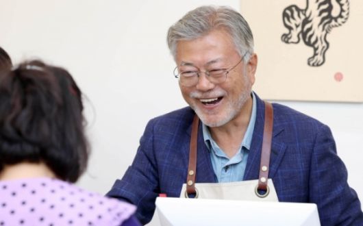 문재인 전 대통령이 26일 오후 경남 양산시 하북면 자신의 책방 ‘평산책방’에서 계산 업무를 하며 책을 손님에게 건네고 있다. 2023.4.26 연합뉴스 |