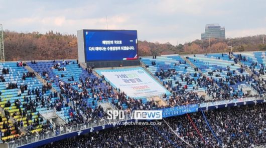 여기까지였다. 언제나 수원삼성 뒤에서 "이 사랑에 후회는 없다"며 애정을 표하던 충성스런 팬들은 목소리를 내지 못했다. 강등이라는 현실을 받아들이지 못하는 모습으로 느껴질 정도로 적막에 휩싸였다. 수원삼성은 K리그에서 가장 충성스런 팬덤을 자랑한다. 시즌 초반부터 강등 위험이 도사리는 행보에도 홈과 원정을 가리지 않고 푸른 물결을 만들어냈다.