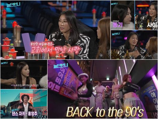 이날 '놀던언니' 5인방과 김현정, 미나, 홍영주는 '세기말 감성' 가득한 나이트 클럽에서 모인다. 초장부터 격렬한 댄스파티로 온몸 인사를 나눈 이들은 서로를 껴안으며 반가워하고, 특히 이지혜는 샵과 데뷔 동기였던 스페이스A 김현정에게 "인상이 많이 좋아졌다"며 그간의 안부를 묻는다. 김현정은 "많이 선해졌죠? 코 수술을 했었는데 (보정물을) 뺐다"고 셀프 폭로한다. 이에 채리나도 "나도 뺐다"며 '코밍아웃'에 동참해, 현장을 폭소로 물들인다.
