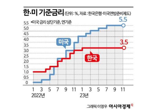 블룸버그 산하 블룸버그 인텔리전스(BI)는 최근 보고서에서 현재 최대 2%포인트까지 벌어진 한미 기준금리 역전이 당분간 이어질 것으로 전망했다.