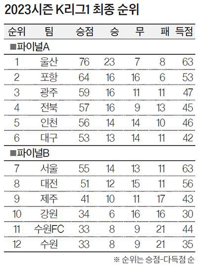 한편 K리그는 유료 관중 공식 집계를 시작한 2018년 이후 처음으로 1·2부를 합해 한 시즌 ‘300만 관중’ 시대를 열었다. 한국프로축구연맹에 따르면 이날 열린 3경기에 유료 관중 합계 4만6789명이 입장해 총 301만1509명의 관중을 기록했다.