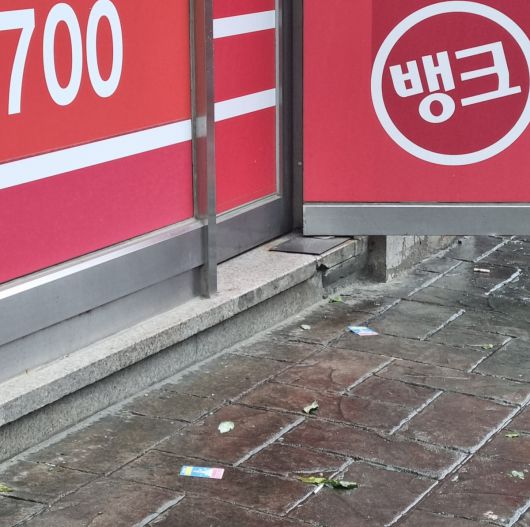 11월 27일 오전 9시 40분께 비가 오는 데도 대로변에 있는 가게 앞에는 불법대부업 광고 전단이 있었다. 걸어서 5분이 걸리는 거리에 총 13장의 같은 전단이 띄엄띄엄 뿌려져 있었다. |