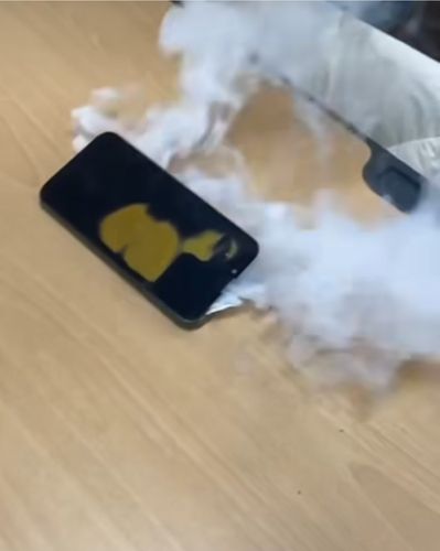 A군의 친구가 이를 촬영해 다음 날 사회관계망서비스(SNS)에 올렸고, 3일이 지난 현재 동영상 조회수는 1천만을 넘길 정도로 국내외로 화제가 됐다. 누리꾼들은 '리튬 배터리가 전소될 때 나오는 연기를 대량으로 흡입하면 사람이 죽을 수도 있다', '처음에 드라이아이스인 줄 알았는데 폰 액정이 노랗게 되는 것 보고 소름', '광고 연출인 줄' 등 믿을 수 없다는 반응을 보였다.