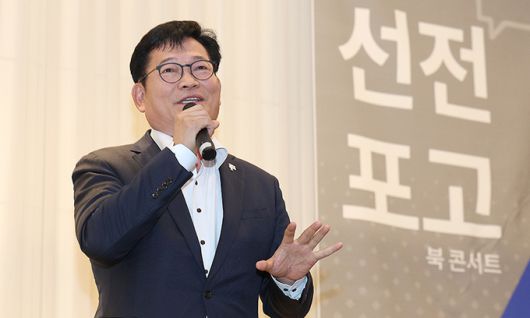 송영길 전 더불어민주당 대표가 지난 2일 대구 수성구 만촌동 인터불고호텔에서 열린 자신의 저서 '송영길의 선전포고' 북콘서트에서 발언하고 있다. 연합뉴스 |