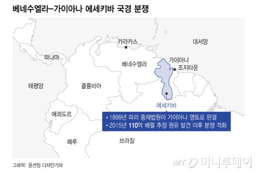 베네수엘라는 1899년 영국 요청에 따라 파리에 있는 국제기구인 중재법원이 정해준 현재 국경을 인정할 수 없다며 가이아나에 협상을 요구해왔다. 스페인 식민시대부터 가이아나는 베네수엘라에 속해 있었고, 현재 국경은 강대국들이 일방적으로 결정한 것이므로 받아들일 수 없다는 취지다. 재판소 판결 당시 가이아나는 영국 식민지였고, 1966년 영국으로부터 독립해 공화국을 선포했다.