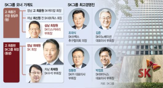 SK그룹은 2개 회사 중심의 지배구조 체제를 갖췄다. 최 회장이 ㈜SK를 중심으로, 최 부회장이 SK디스커버리와 산하 계열사에 대한 지배력을 확보하며 ‘한 지붕 두 가족’ 경영을 해왔다. 최 부회장은 독립 경영을 이어오며 그룹 전면에 나서지 않았지만 수펙스추구협의회 의장으로 임명되면서 그룹 내에서 중추적인 역할을 하게 된다.