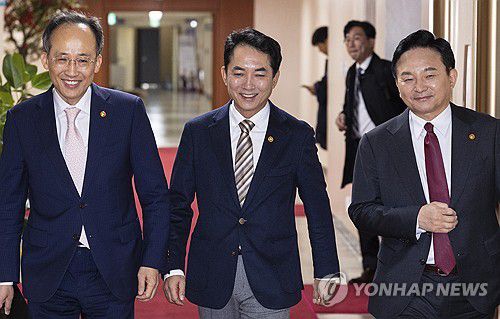 나란히 국무회의 입장하는 추경호 부총리와 박민식·원희룡 장관 |