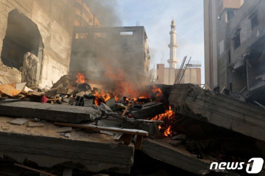 (칸유니스 로이터=뉴스1) 권진영 기자 = 4일(현지시간) 가자지구 남부 칸 유니스의 한 주택이 이스라엘의 공습으로 무너져 불타고 있다. 팔레스타인 무장 정파 하마스와 일시 휴전 상태였던 이스라엘은 3일부터 가자지구 전역에 공격을 재개했다. 2023.12.04/ ⓒ 로이터=뉴스1 Copyright (C) 뉴스1. All rights reserved. 무단 전재 및 재배포, AI학습 이용 금지. |
