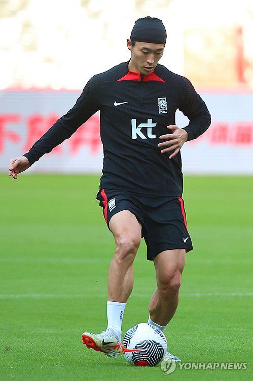 훈련하는 조규성 |