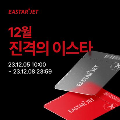 [헤럴드경제=김성우 기자] 이스타항공이 5일 오전 10시부터 8일까지 홈페이지와 모바일 앱(웹)을 통해 12월 ‘진격의 이스타’ 특가 프로모션을 진행한다고 밝혔다.