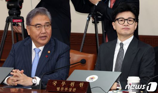(서울=뉴스1) 김명섭 기자 = 한동훈 법무부 장관·박진 외교부 장관이 5일 오전 서울 종로구 세종대로 정부서울청사에서 열린 국무회의에서 대화를 하고 있다. 2023.12.5/뉴스1msiron@news1.krCopyright ⓒ 뉴스1. All rights reserved. 무단 전재 및 재배포, AI학습 이용 금지.